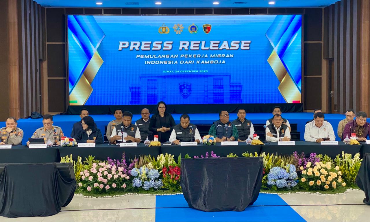 “Polri berkomitmen untuk memberikan perlindungan maksimal kepada warga negara Indonesia, termasuk pekerja migran. Kasus ini menjadi perhatian serius karena para korban direkrut dengan iming-iming gaji besar, namun justru dieksploitasi dan mengalami kekerasan,” ujar Komjen Pol Syahardiantono dalam konferensi pers di Lobby Bareskrim Polri, Jum’at (26/12/2025).